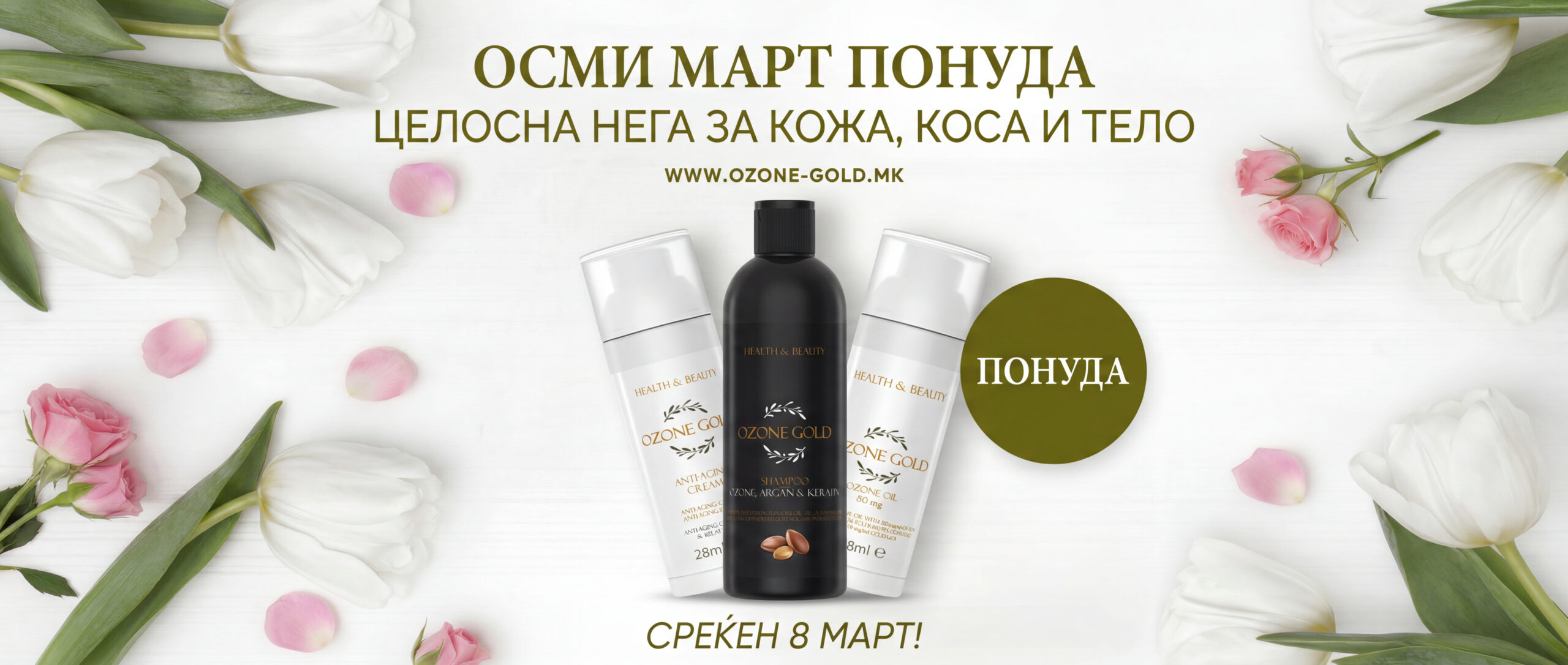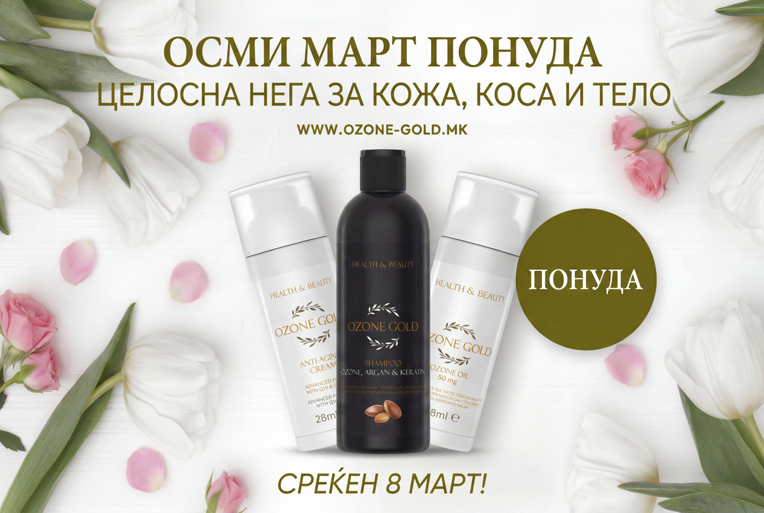 Со цел да одговори на потребите на современиот човек и да помогне со ефикасни решенија за низа здравствени проблеми, Ozone Gold следејќи и применувајќи ги највисоките стандарди за квалитет, ја проширува својата понуда со атрактивни производи кои ќе го потврдат позитивното искуство со озонираното маслиново масло, како водечка состојка што ги поврзува сите производи на брендот.